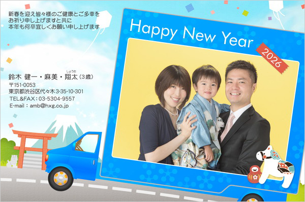 • 出産・ファミリー写真年賀状 No.619 ブルー(トラック)