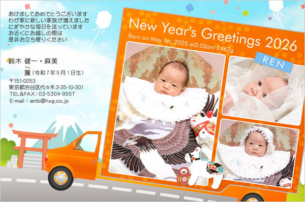 • 出産・ファミリー写真年賀状 No.619 オレンジ(トラック)