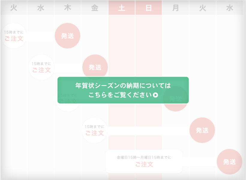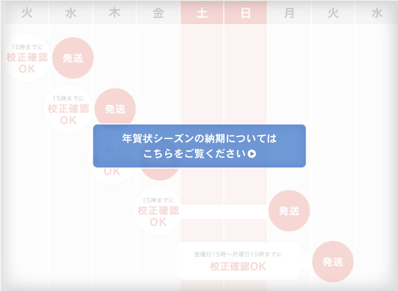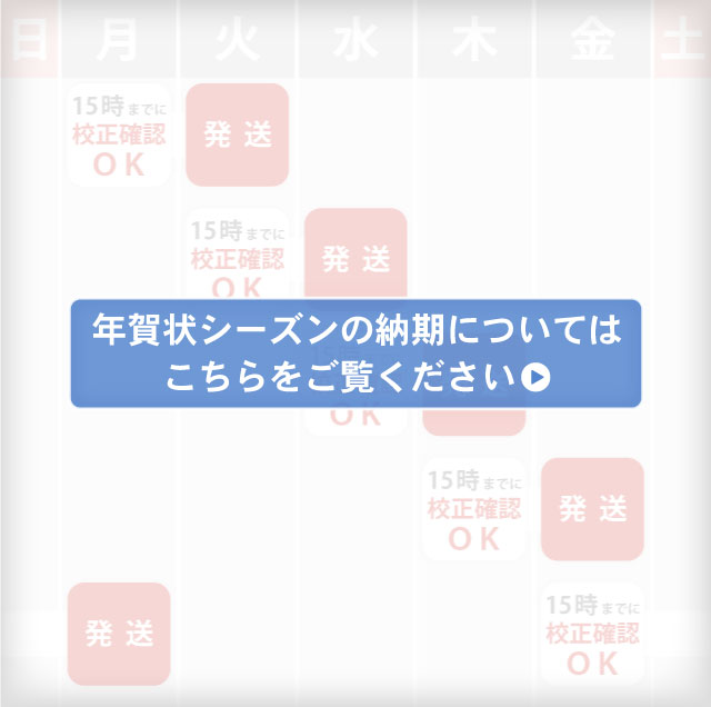 • ※10月中旬~12月の年賀状シーズン、及び1月の寒中見舞いシーズンは繁忙期となり、上記スケジュールと異なります。