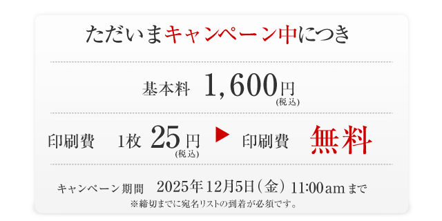 宛名印刷オプション キャンペーンにつき印刷料金無料! 3,000 3,000
