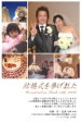 評価★★★★★ | 他社の結婚報告ハガキと見比べてみて、アンビエンテさんのデザインが一番気に入ったので、注文をさせていただきました。注文から納品されるまでが思っていた以上に早く、とても満足しています。ありがとうございました。また何かの機会に利用させていただきたいと思います。 |