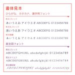 英文書体(英文ゴシック・英文タイムス・英文筆記体)の3種類、和文書体(和文ゴシック・和文丸ゴシック・和文楷書)の3種類をご用意しております。