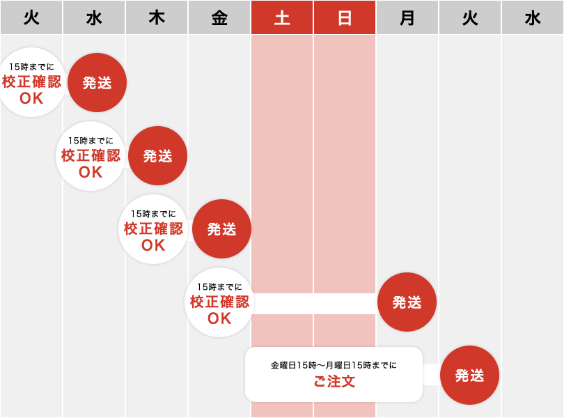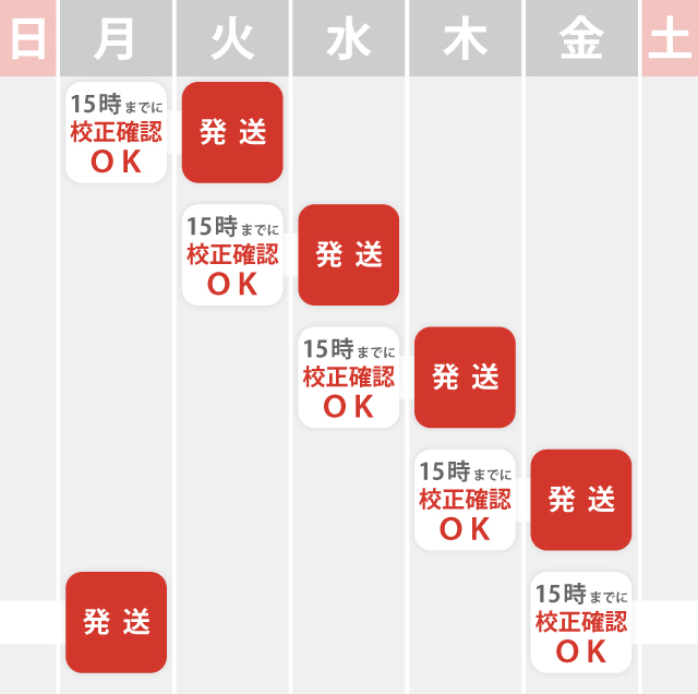宛名印刷、実物郵送校正は別途有料オプションとなります。