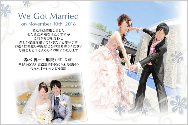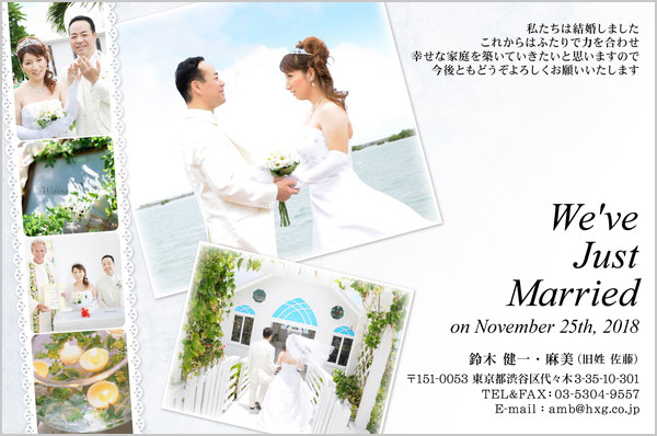 プロが仕上げるデザイナーズポストカード。結婚報告はがき・写真年賀状・暑中見舞い・引越しはがき・出産報告はがきなどをお届けいたします。